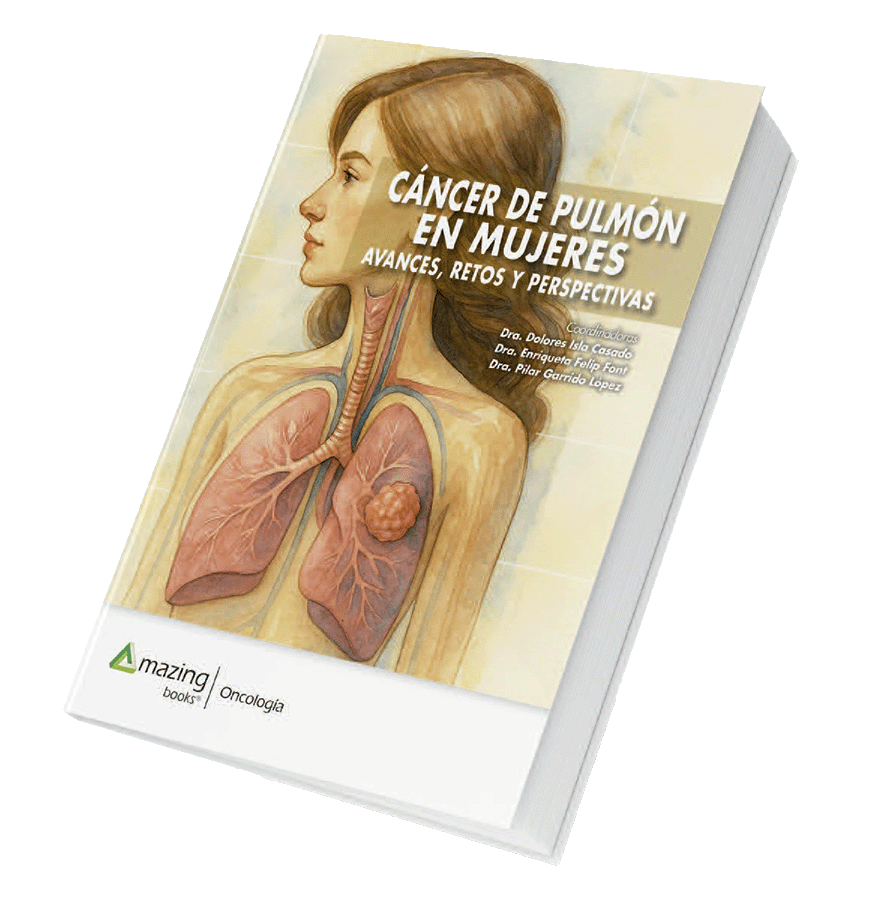 El libro «Cáncer de pulmón en mujeres: Avances, retos y perspectivas» analiza de forma integral esta enfermedad desde una perspectiva de género. Expone las diferencias epidemiológicas, señalando el aumento de incidencia en mujeres, especialmente en España, y la influencia determinante del tabaco y otros factores como el radón o la contaminación. A nivel biológico, aborda las particularidades moleculares, genéticas y hormonales que diferencian el cáncer de pulmón femenino, con implicaciones directas en biomarcadores, respuesta inmunitaria y eficacia terapéutica.